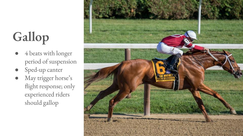 - Covers walk, trot, canter, and gallop
