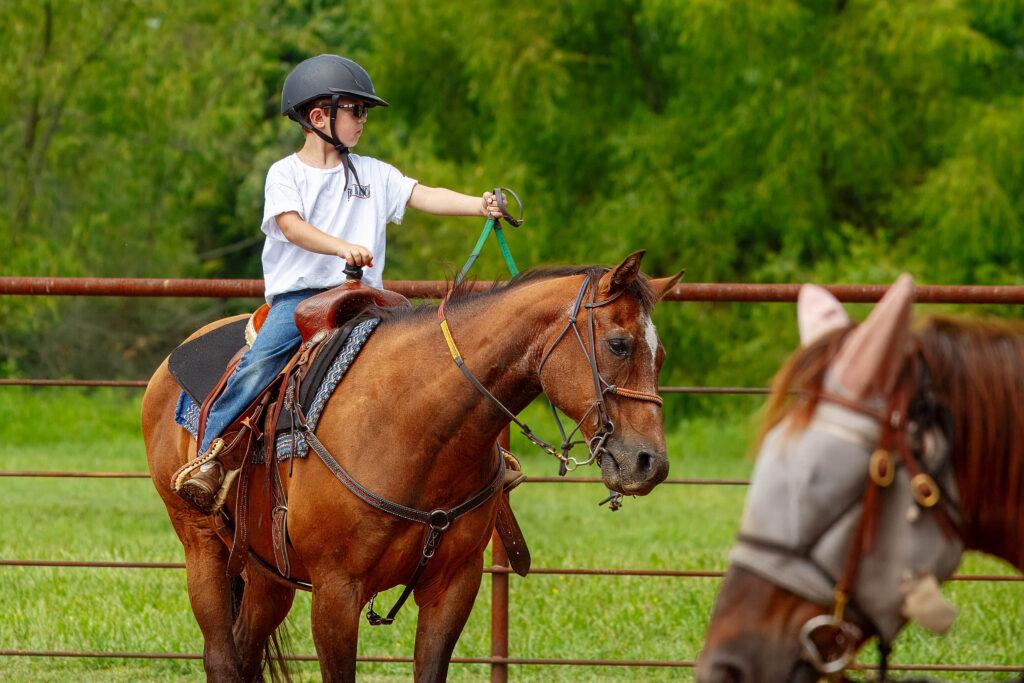 Each morning begins with a short, horse-inspired Christian devotional from Unbridled Faith. Campers will be divided into groups to participate in a variety of horse activities, like trail riding, arena classes, and more. Throughout the week, campers will enjoy fun, friendly, team-building competition. Campers may earn points for their teams throughout the week by demonstrating their horse knowledge, showing kindness to their peers, winning games, and memorizing Bible verses. On Friday, campers will participate in a horse show where they will demonstrate what they have learned during the week. Parents, family, and friends are encouraged to attend!
